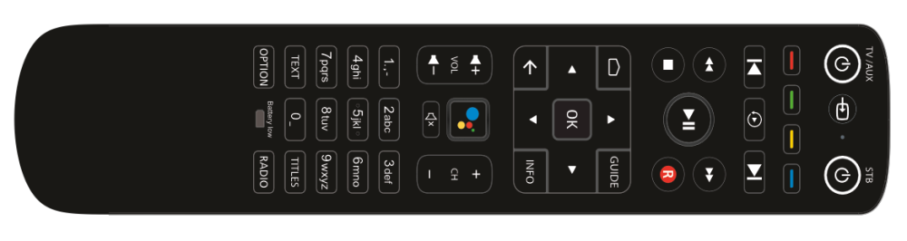 MAXI RCU, IR, BLE, Voice, steuert Linux & AndroidTV STB + TV