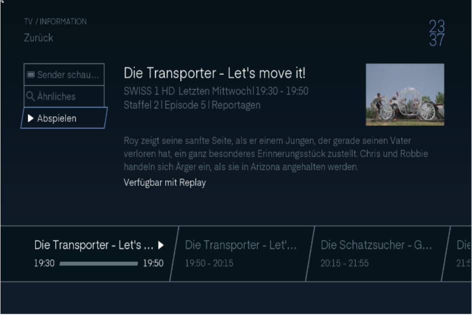 Wählen Sie das gewünschte Programm Ihrer Wahl und nachdem die EPG-Details angezeigt werden, können sie den Asset abspielen.